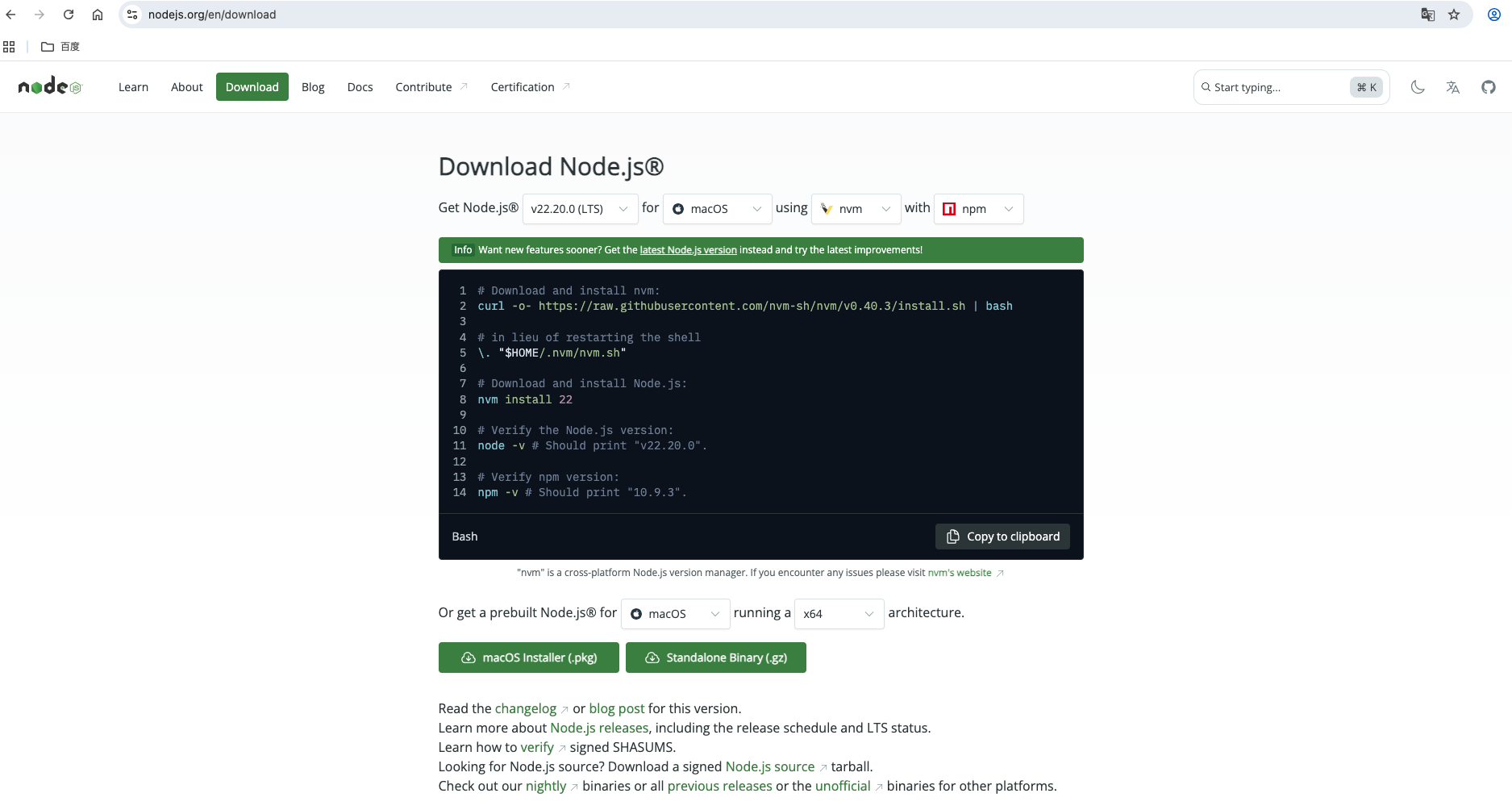 - 下载 Node.js LTS 版本