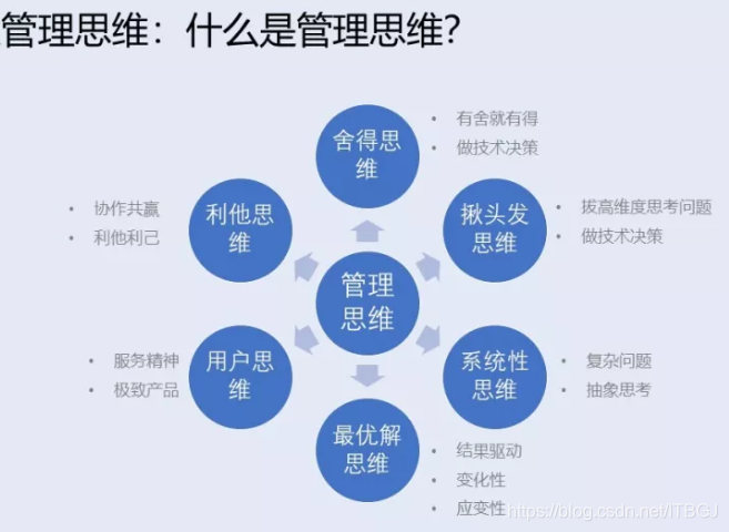 什么是管理思维?管理思维其实是一种复杂性思维,包括:舍得思维、揪头发思维、系统性思维、最优解思维、用户思维、利他思维。