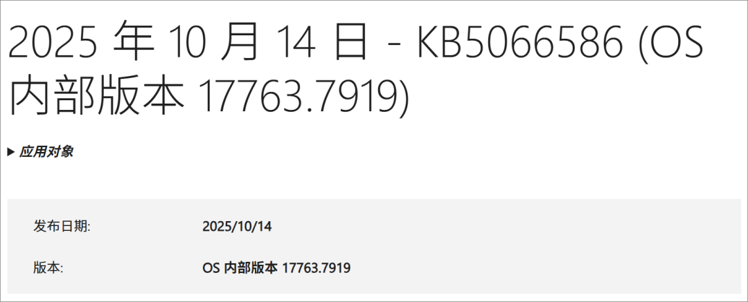 映像已集成至2025年10月14日更新补丁,安装后版本号为17763.7919