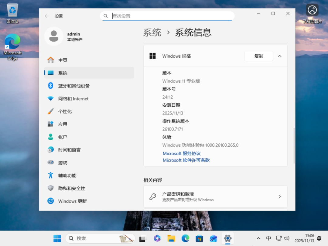 安装后系统信息如图,版本号 26100.7171 (24H2)
