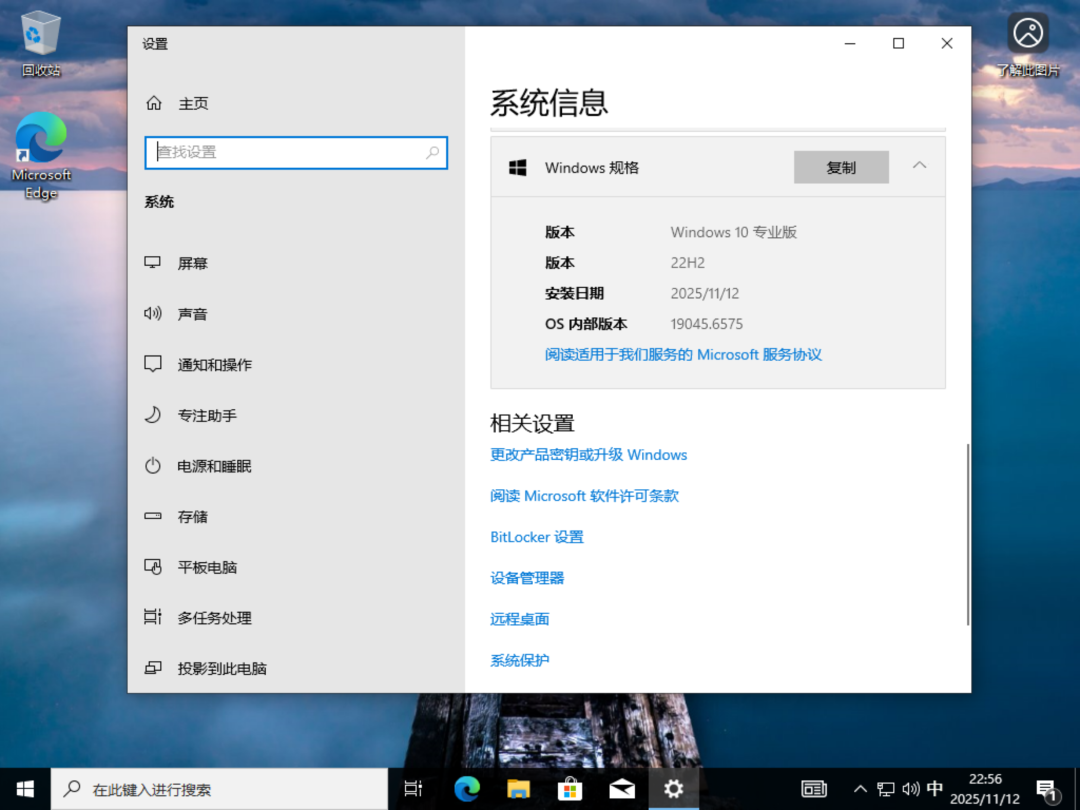 安装后系统信息如图,版本号 19045.6575