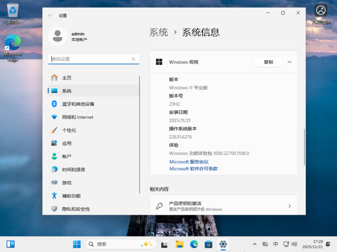 先下载资源,之后可以把镜像用于安装Win11系统,或者升级系统,镜像已更新至11月20日发布的最新正式版,版本号23H2(22631.6276)。ISO映像文件名的结构为"系统_版本号_体系_语言_来源_版本_制作者_CRC32校验值.ISO"