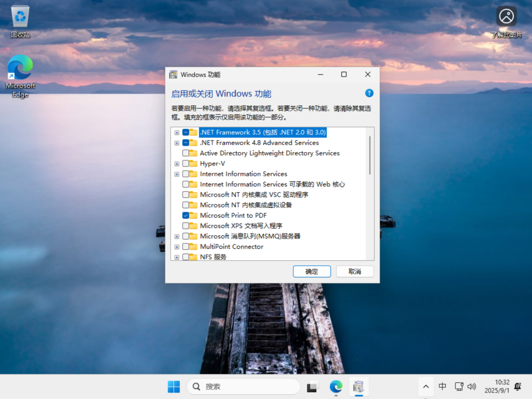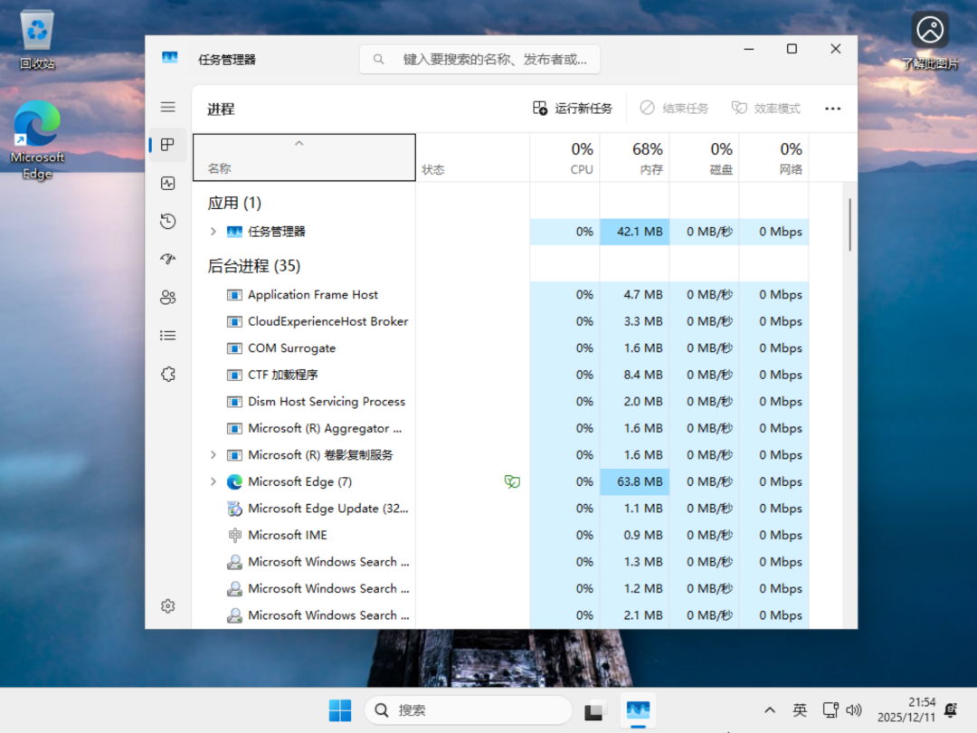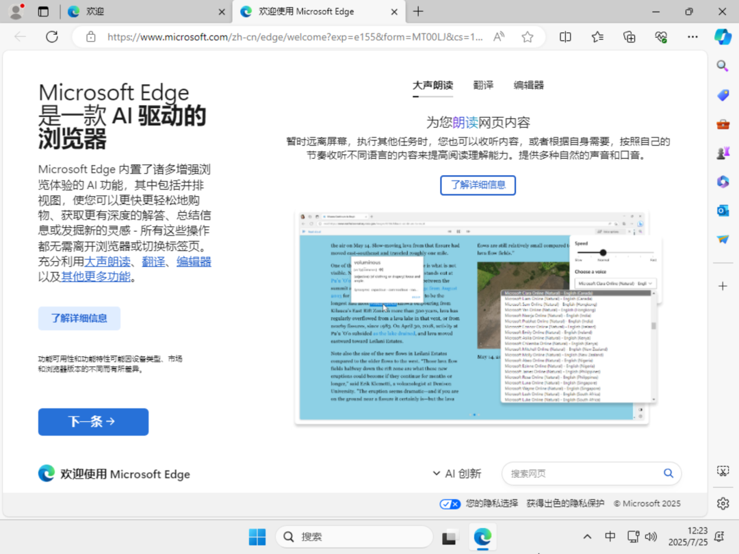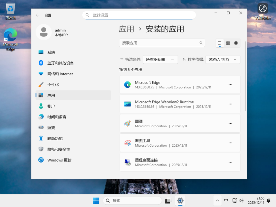 预装了 Edge 浏览器,但同样没有预装微软应用商店