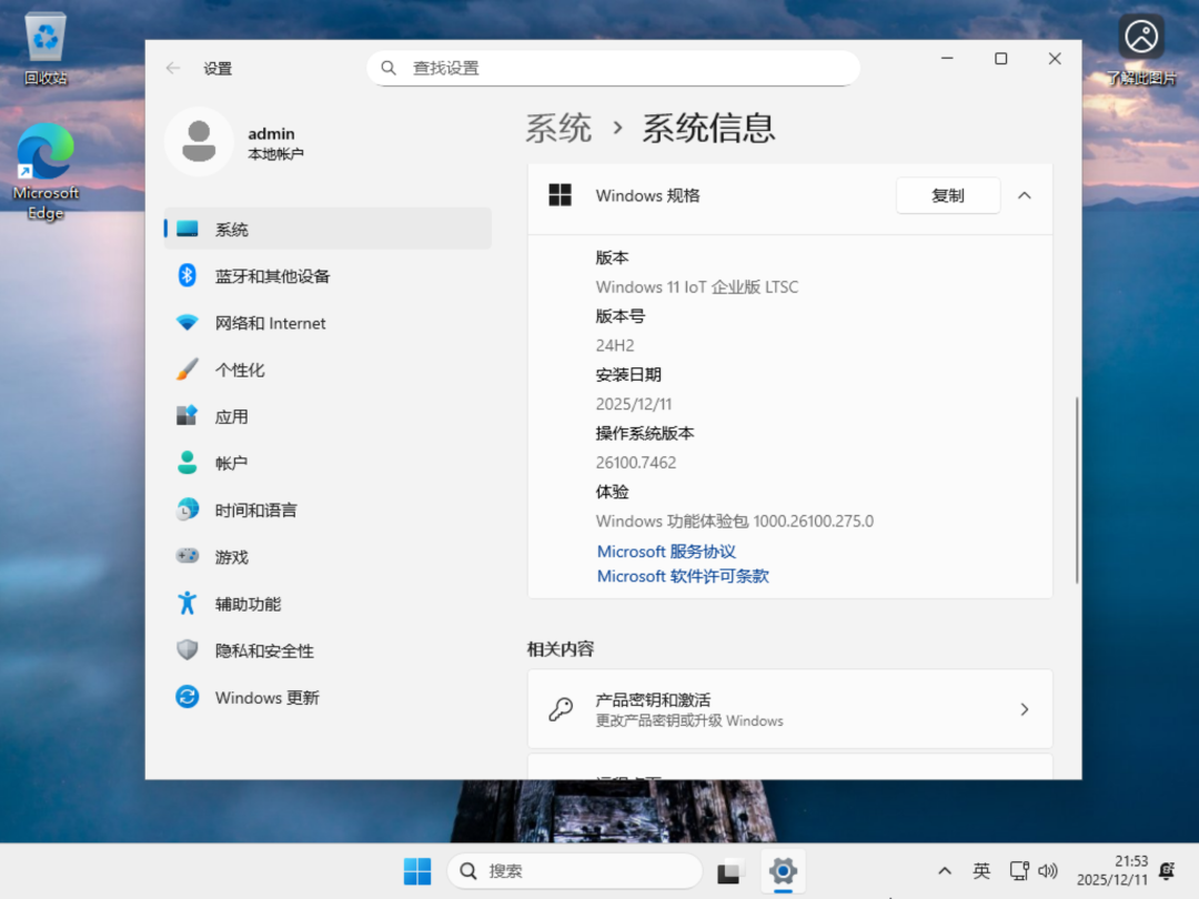 进入资源文件夹后,下载映像文件,之后可以把镜像用于全新安装Win11系统。映像内同时包含了常规Win11 LTSC版本,和Win11 IoT物联网 LTSC版本。安装时根据需要选择即可。镜像版本号24H2,已集成至2025年12月9日更新补丁,安装后版本号为26100.7462。