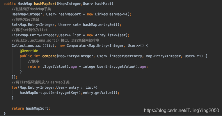 2.写返回倒序的HashMap集合的方法: