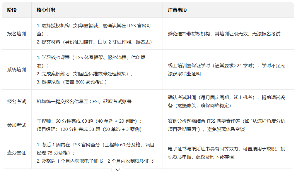 ITSS 的 “短周期” 是核心优势,但需精准把控每个环节,避免因流程不熟悉延误拿证: