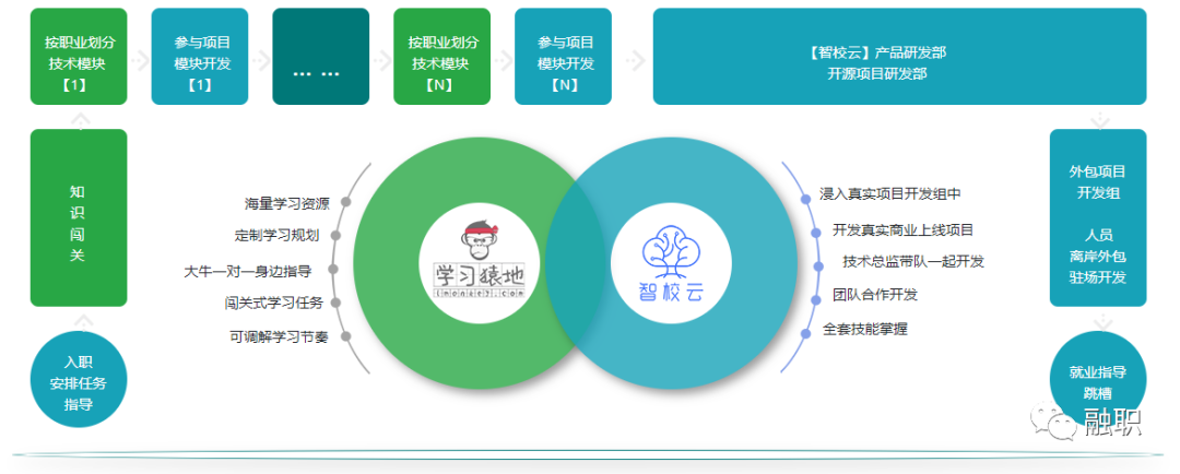 参加培训后合格毕业的学员,虽然技术能力完全可以胜任程序员的开发工作。但参加工作是学员和企业的双向选择,对于没参加过工作的学员来讲,对第一份工作都会有一丝丝的“恐惧”,对自己不自信,和有开发经验的程序员相比,的确也存在工作熟练度不够,工作体验感不强,解决实际问题能力差等。导致面试时不自信,薪资要求不高。再有,对于企业来说,面试者有再好的技术没有工作经验,也会被认为技术不强,当然就不会提供和技术对等的薪资及对等的职位,导致找工作难度大。EduWork则依托于智校云科技公司,专注教育信息化系统研发,有几十个自主研发上线的产品项目,所以有条件为毕业生安排实习,这也是同行不具备的优势,浸入项目组实习。在实习中,和同组程序员的管理是一致的,并由CTO带着开发,完整参与至少一个商业项目的开发流程,包括熟悉项目组开发规范、项目开发流程、项目管理等。免费的实习周期安排一个月,结束后即安排推荐就业。如果想再多积累一些项目经验和工作经验, 来提高自己将来的就业薪资,可以选择继续参加付费实习。