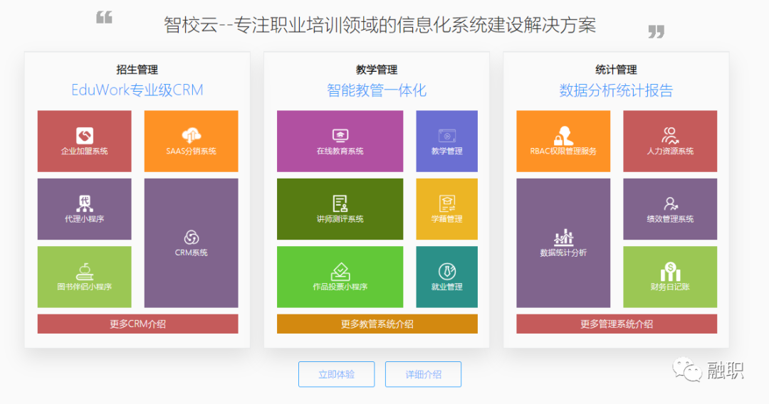 为什么敢称EduWork的讲师团队是行业最牛的,不仅是有头衔,例如畅销书作者、网红名师、CTO授课等。每个讲师一定要有5年以上的授课经验,同时必须是一线的技术总监,每个讲师都是【智校云】的技术总监。一边授课还要一边带领团队开发商业项目,也就是即要有教学方法,也要有与时俱进的硬核技术。虽然都是技术全面的讲师,EduWork一门课程也会安排多名讲师分段授课,每个讲师固定讲授一阶段课程,这样安排是为了让每个讲师,每个阶段的课程,每年都会重复讲解十几次,讲解熟练,课程更新快,经验和技巧并用。另外,授课安排也会根据讲师的风格特点确定讲解的阶段,例如,初级阶段会安排能让你产生学习兴趣的讲师,培养学员的学习习惯。中级阶段会安排逻辑性强的讲师,帮你打通开发的“任督二脉”,高级阶段会安排CTO授课,像管理项目组成员一样,让你体验开发的工作氛围,与将来所从事的工作无缝对接。