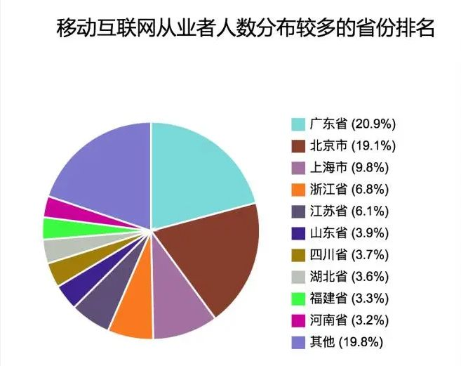 根据数据分析,目前按省份排名前十名分别是:广东省,北京市,上海市,浙江省,江苏省,山东省,四川省,湖北省,福建省,河南省。具体人数分布数的占比如下