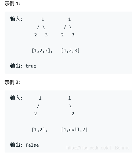如果两个树在结构上相同,并且节点具有相同的值,则认为它们是相同的。