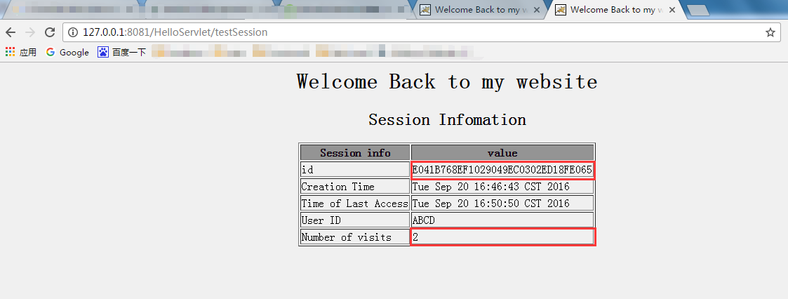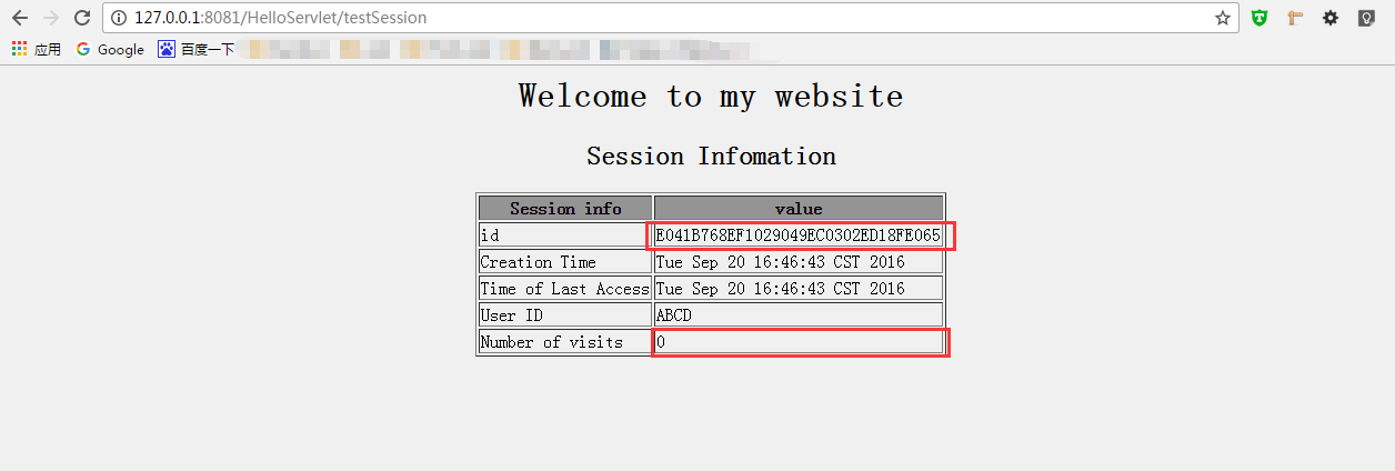 (1)同一浏览器相同窗口刷新后,访问的是同一sessionID,如图4所示,刷新1次,显示访问次数为2.