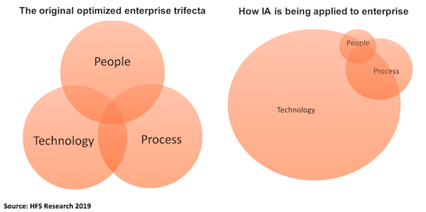 随着 RPA 的逐渐落伍,HFS 可以帮助实现长久的集成自动化。所谓集成,我们指的是集成技术,但更重要的是,我们指的是跨人员、跨流程和跨技术的集成,这些集成需要目标集中和变更管理的支持。集成自动化是转换业务和实现端到端数字一体化办公的途径。