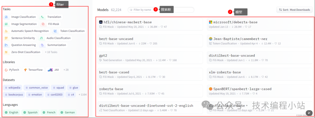 :Hugging Face上有许多公开数据集。 hugging face在NLP领域最出名,其提供的模型大多都是基于Transformer的。为了易用性,Hugging Face还为用户提供了以下几个项目: