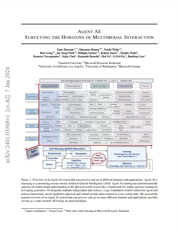 ▌划时代之作 由斯坦福大学李飞飞教授领衔,联合微软研究院首席科学家等全球12位顶尖学者撰写的《Agent AI: Foundations and Frontiers》正式发布!