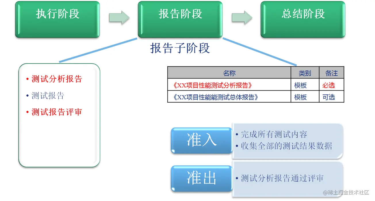 测试执行工作结束后开始撰写性能测试报告。性能测试报告在发布前需要进行评审。
