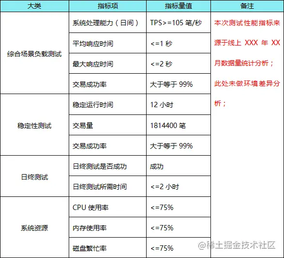 n 性能测试需求:应准确描述性能测试指标项及需求指标值。
