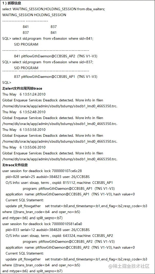 测试组在执行“一般日日间交易模型”负载测试570TPS压力时,数据库监控发现有死锁想象,具体如下: