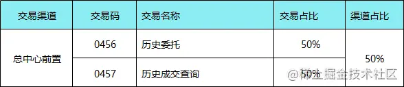(1) 考虑到后期证券系统数据库升级,历史查询可能会影响,所以本次测试单独增加一个场景:历史委托和历史成交查询各50%(即0456和0457)。同时,考虑到线上环境绝大部分该交易是由总中心前置发起,所以本次测试“历史委托和历史成交查询”交易均采用从总中心发起;