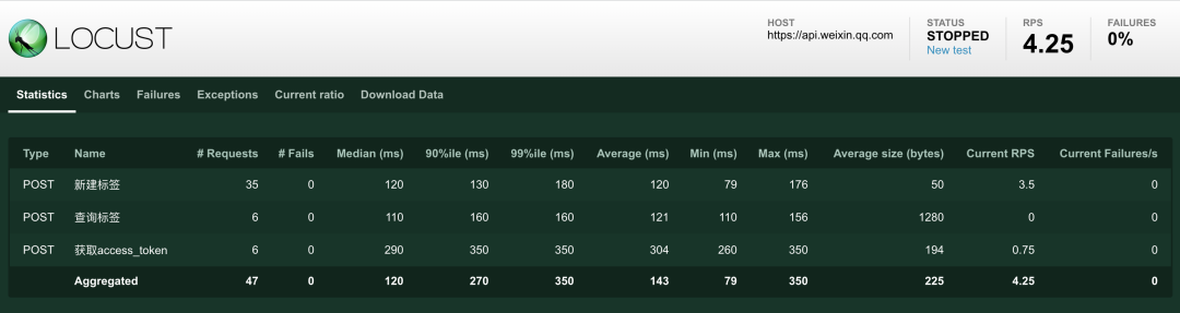 在on_stop方法中又增加了一个查询的接口请求,以便确认创建标签成功了。