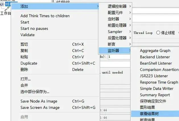 操作:**鼠标右键线程组 -> 添加 -> 监听器 -> 察看结果树