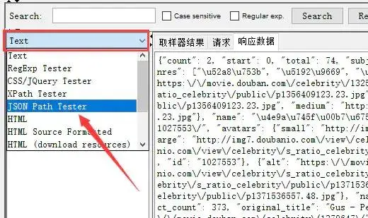 PS:响应数据默认显示格式为Text,可切换为JSON Path Tester格式