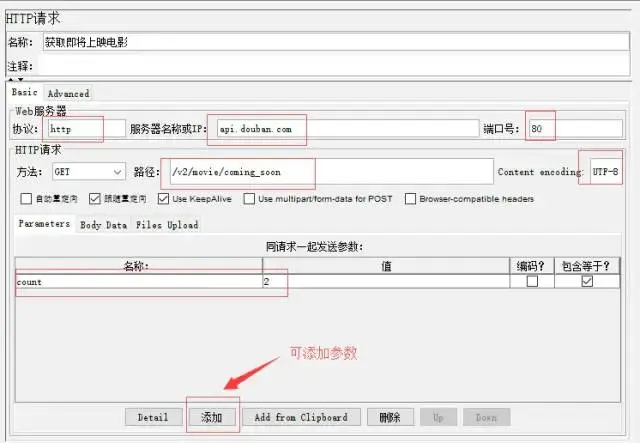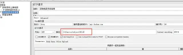 2、添加取样器HTTP请求获取电影条目信息及参数使用
