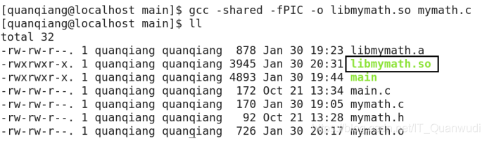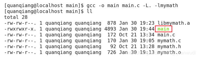 最后,我们提出一下问题:同一个路径下,有同名的静态库和动态库,如果使用“gcc -o main main.c -L. -lmymath”来生成可执行文件,那么系统默认使用哪个库文件?