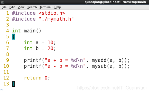 编写使用上面创建的静态库的测试代码: