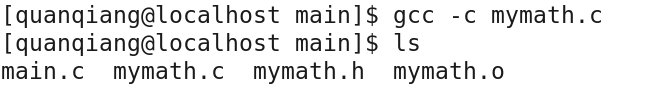 因为这里只需要一个中间文件mymath.o,所以只编译mymath.c