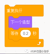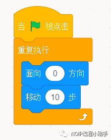 ④要让任何时候圣骑士都听我们的命令向上移动,那么这个积木块的外面需要套上“重复执行”。就是告诉电脑一直做,重复执行的积木“肚子”里面是什么,电脑就一直做什么