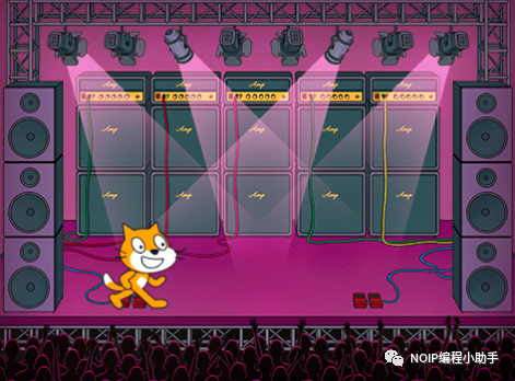 加背景音乐。添加背景音乐一般选择在舞台上添加,具体程序如下: