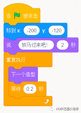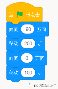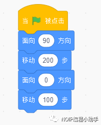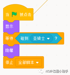 ⑥当小绿旗被点击(开始),圣骑士出现的位置应该是固定的。我机每次重新开始就会回到规定的初始位置,所以使用定位积木。