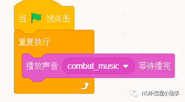 曲子是一首播放完毕再下一曲的,如果想让曲子一直播放,记得嵌套重复执行。