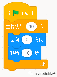 ②光有方向还不够,还需要圣骑士朝着向上的方向移动,这个时候需要添加移动积木