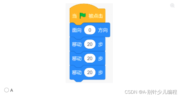3.如下图所示,鲨鱼的初始方向为180度,每个六方格的边长是20,对鲨鱼编程,以下哪个程序可以让鲨鱼吃到小鱼 ()