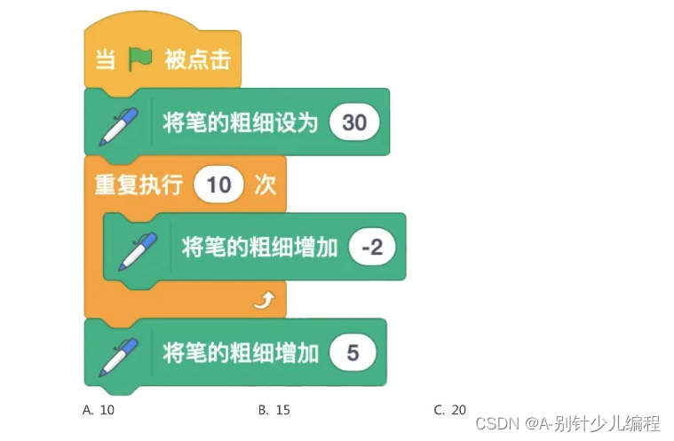 5.小可同学运行了下面的程序。请问画笔多粗 ?