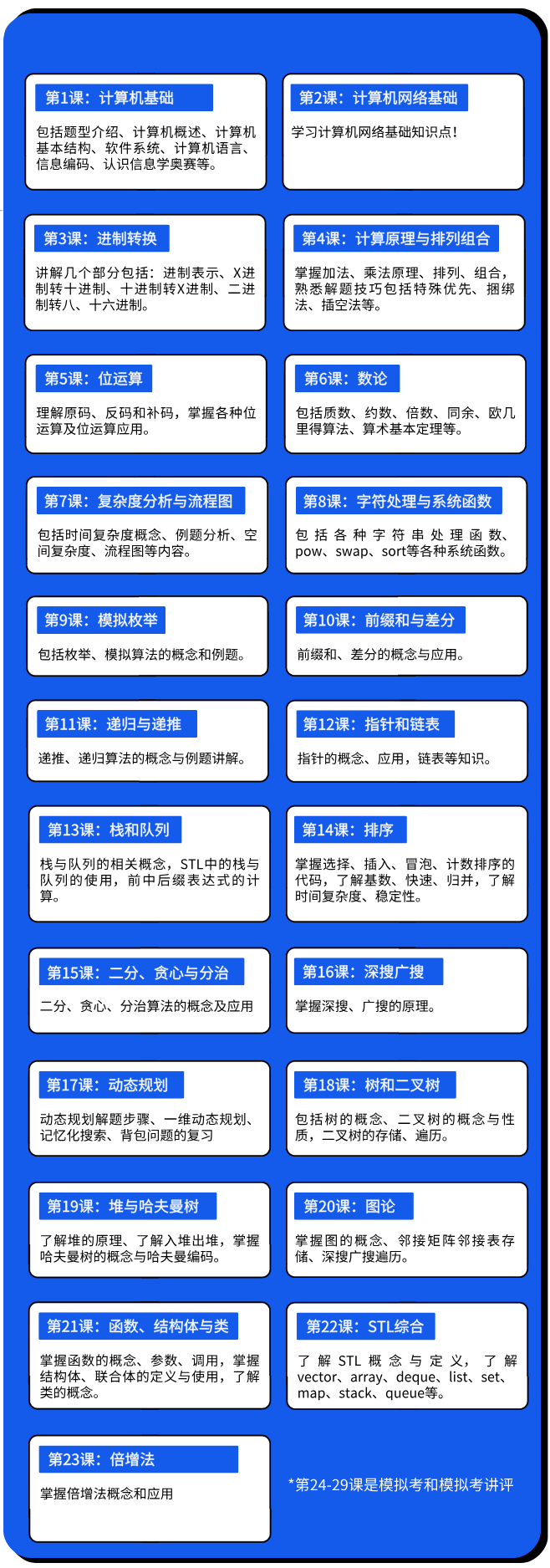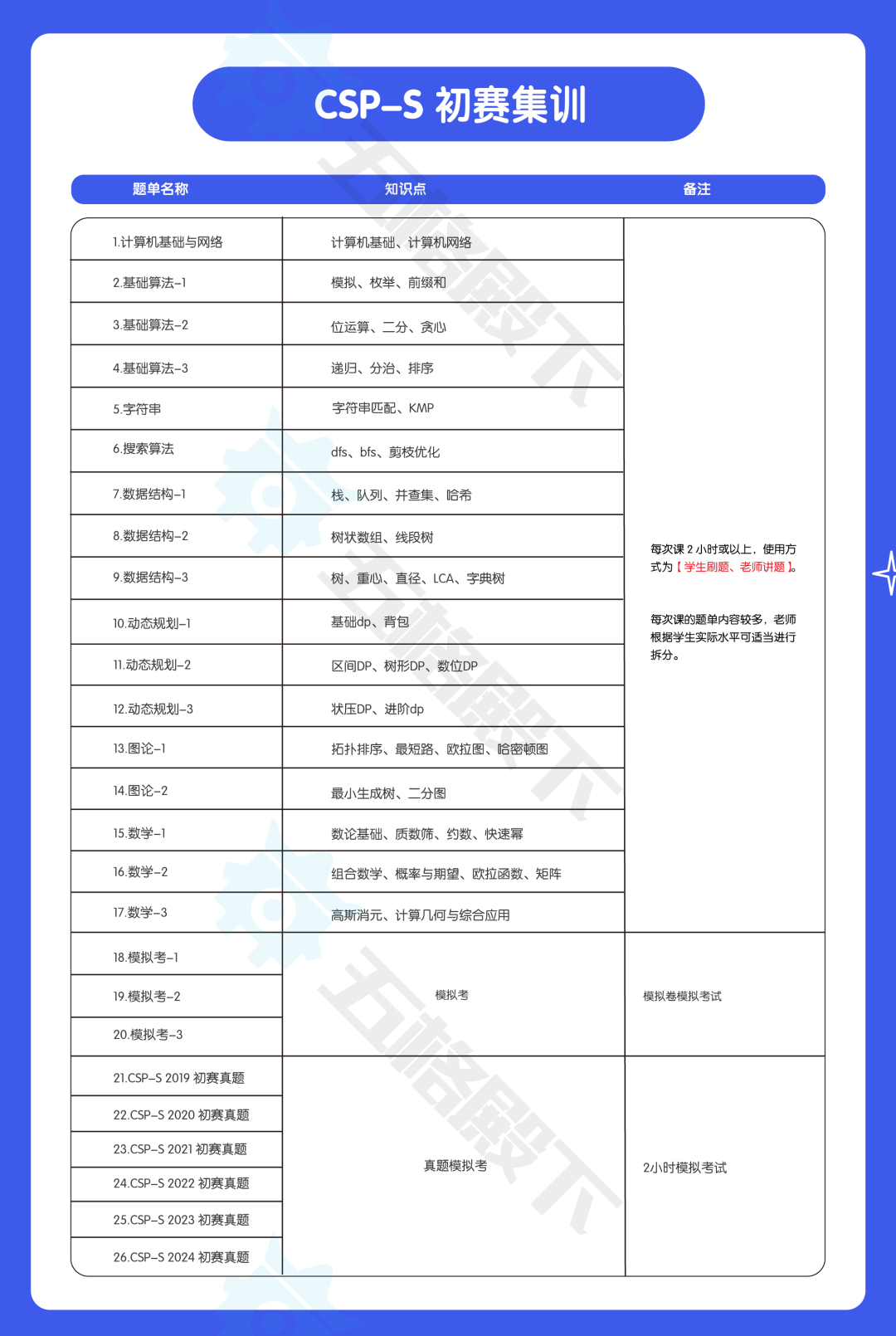 助力学生掌握初赛核心考点,熟练运用算法工具,全面提升代码实现与问题解决能力,为CSP-S初赛晋级奠定坚实基础!
