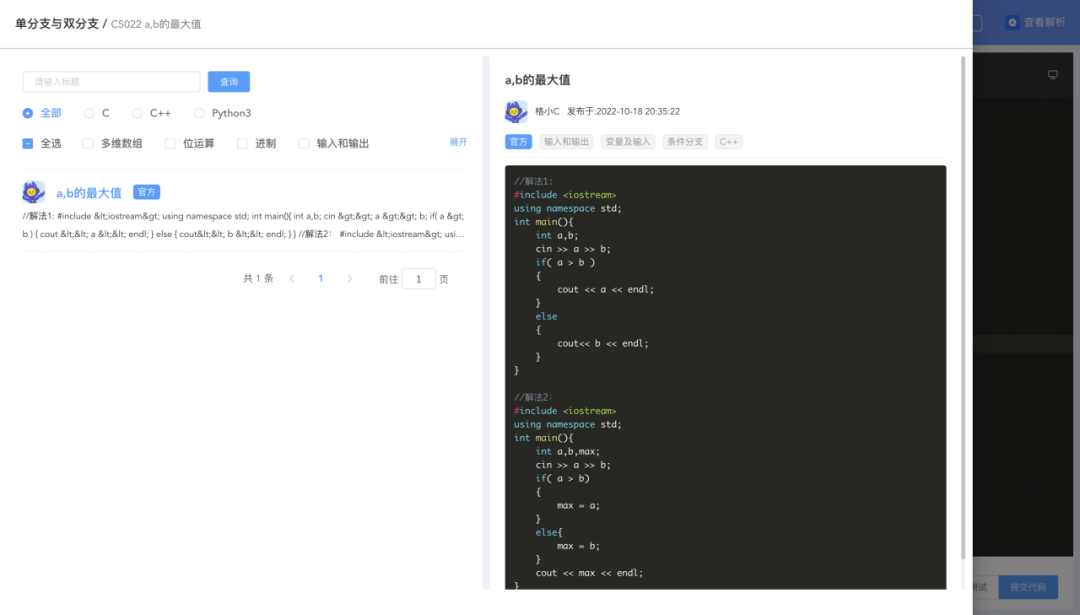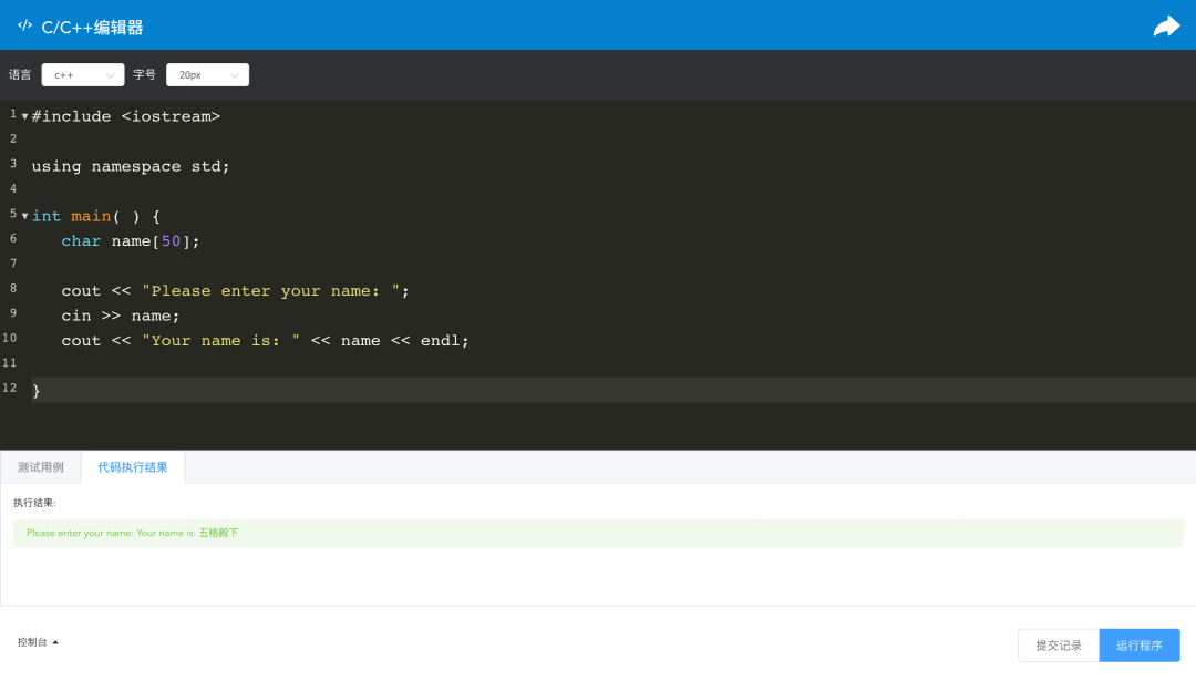 C/C++在线编辑器,无需安装任何插件,有网就可以练习,电脑、平板都可以进行编程,随时随地,想学就学!