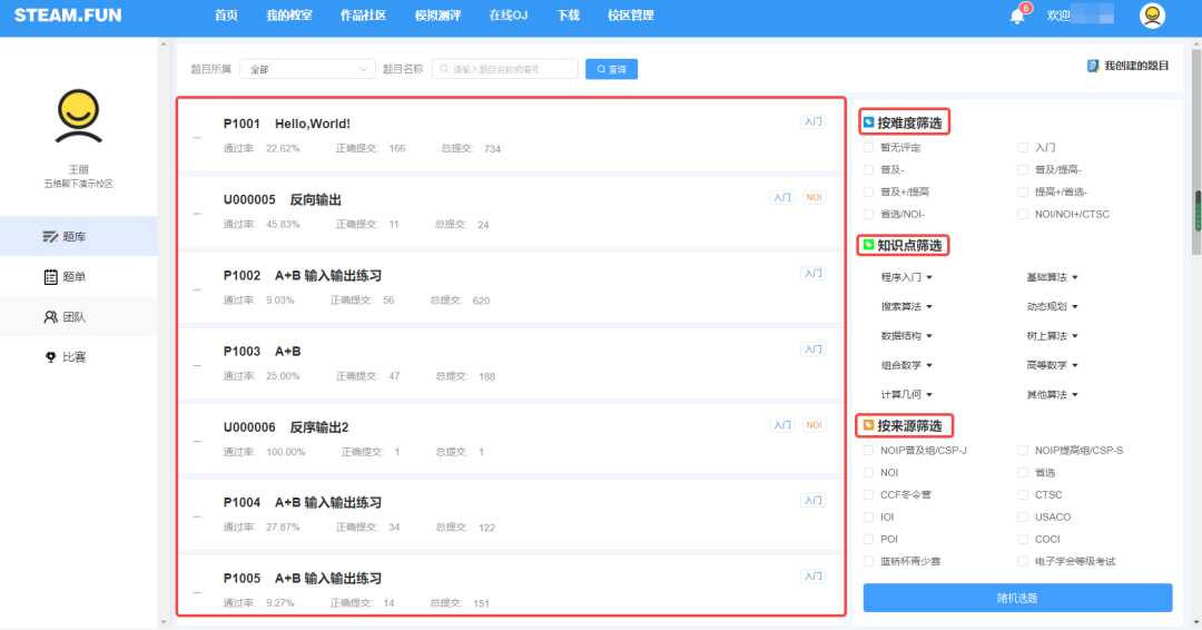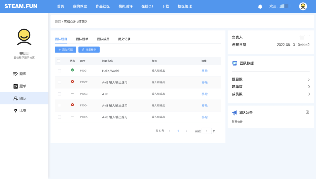 更有“题单”、“团队”、“比赛”、“题解”等实用功能,帮助校区全方位的管理自己的学员,让大家可以高效学习、快速提高!