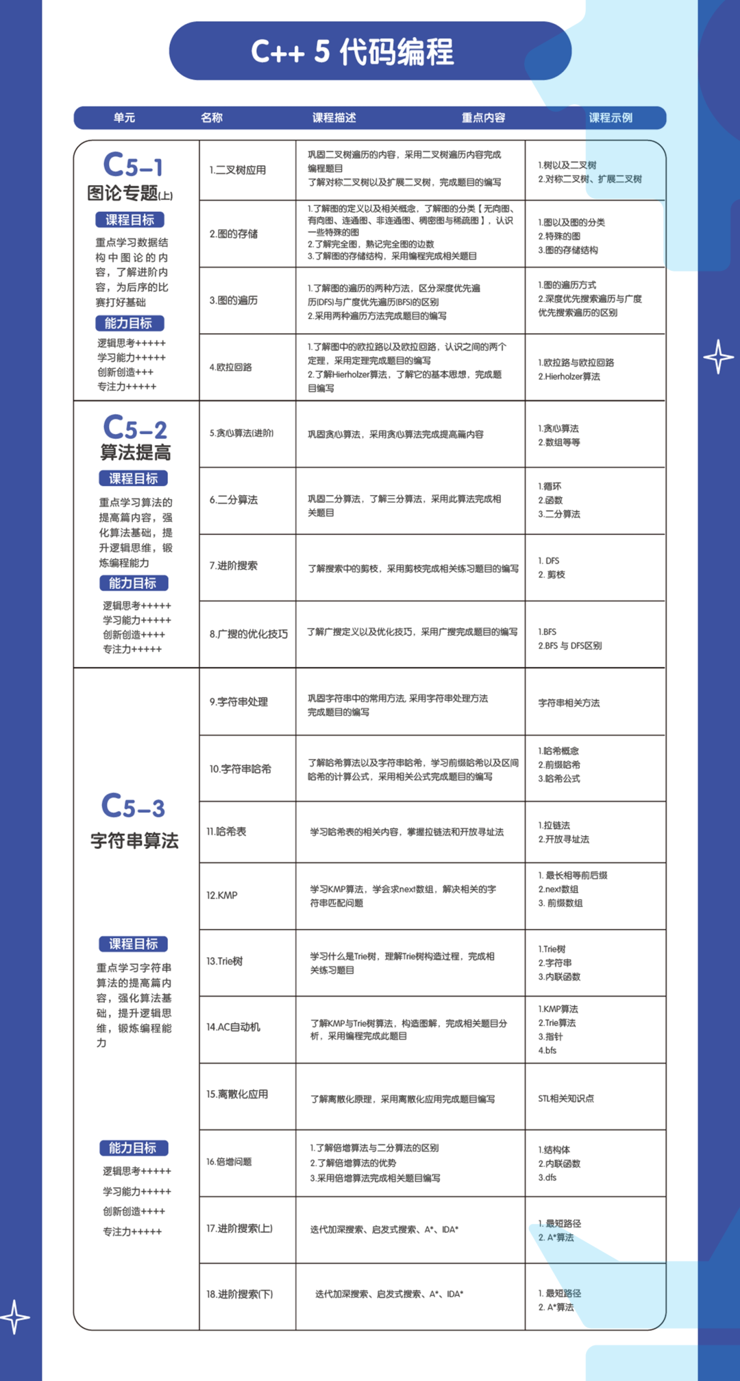 ▶ C5-C6阶段学的是数据结构进阶和高级算法。
