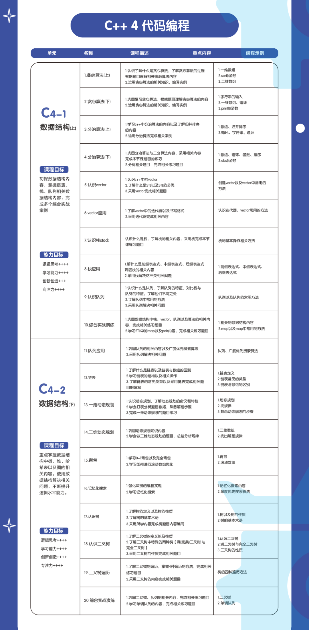 ▶ C3-C4阶段学的是基础算法和基础数据结构;