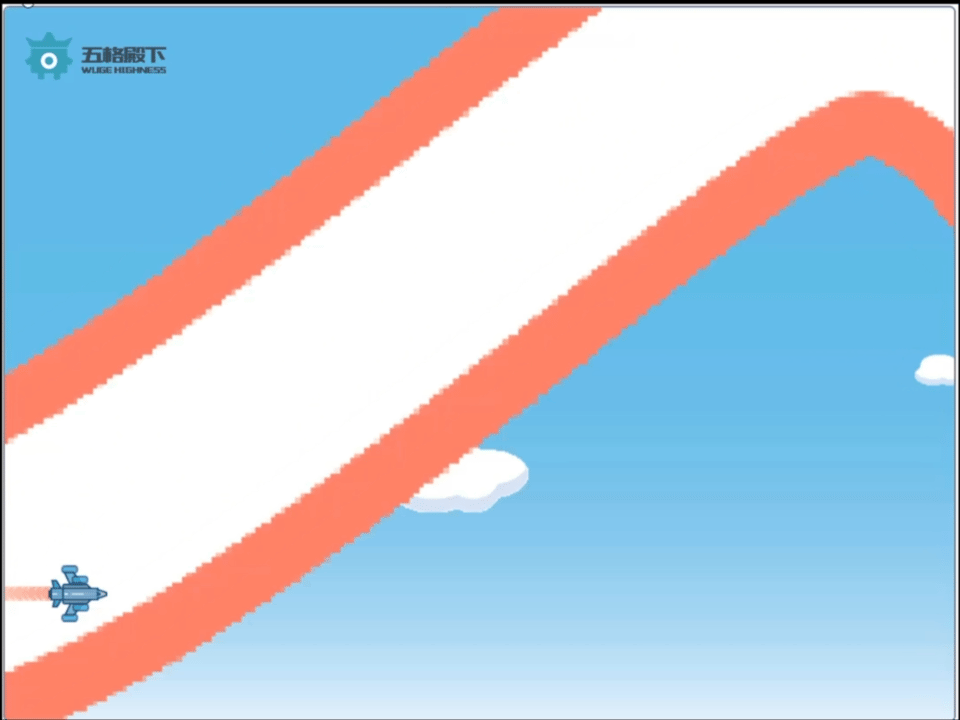 在游戏的过程中,学生通过↑↓→三个键灵活操控战斗机翱翔天际,同时需时刻警惕,注意避开两侧壁沿,勇往直前,飞到终点即可胜利。