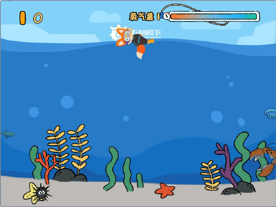 游戏的过程中,需要避开水母、鲨鱼等危险生物,同时还要留意氧气条,确保有足够的时间及时浮出水面。