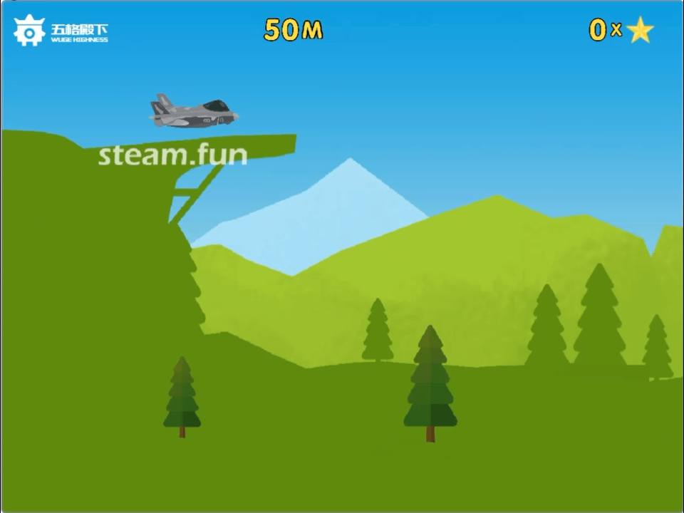 通过空格键控制飞机上升,避开山峰、树木和空中鸟群,收集散落各地的星星。