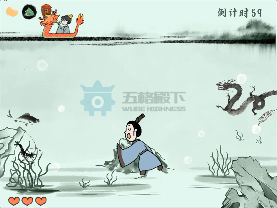 在倒计时时间内保护好屈原,时间结束即为胜利。