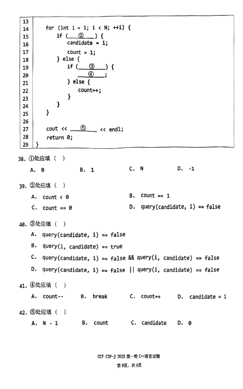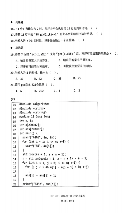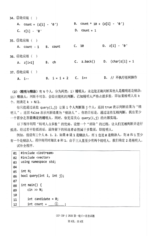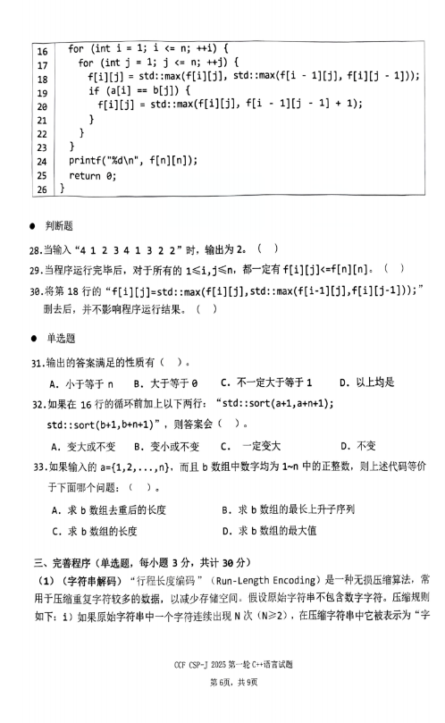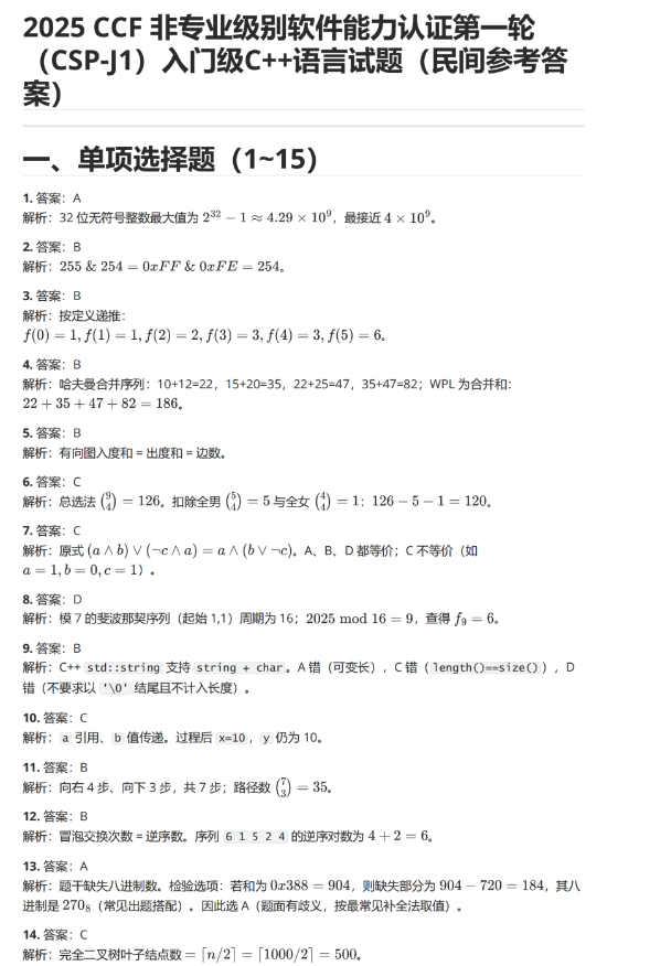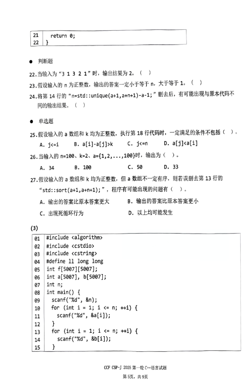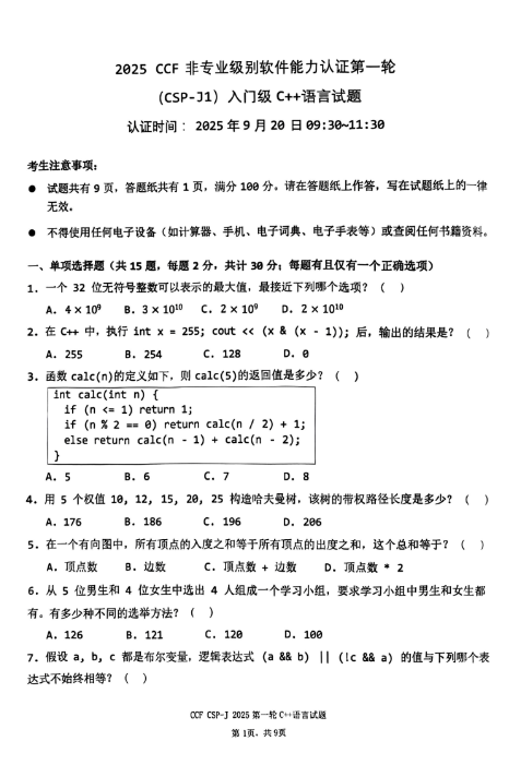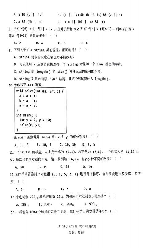 2025 年 CSP-J1-S1 第一轮入门级和提高级 C++ 语言真题整体上注重对基础知识的考查,同时也强调对编程能力和逻辑思维的运用,以下是对其的详细测评: