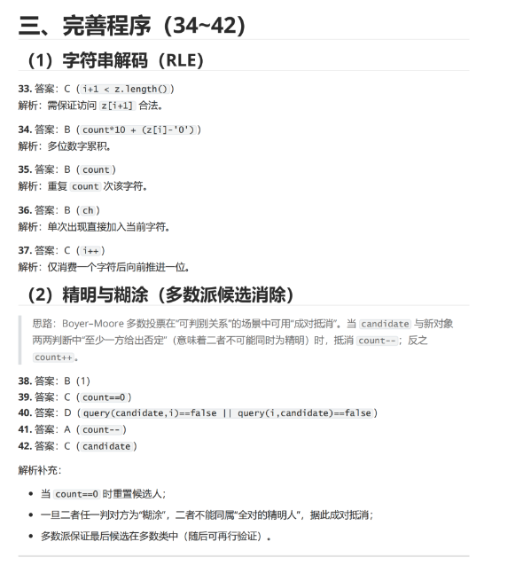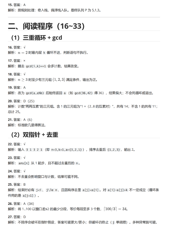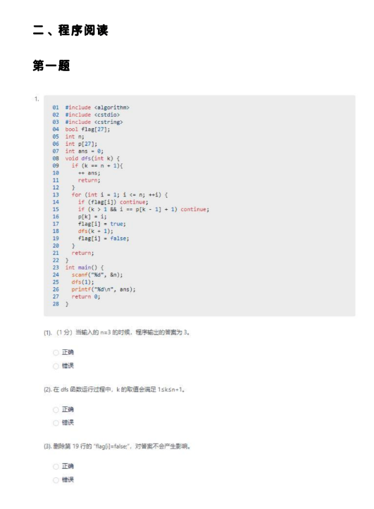 :阅读程序题和完善程序题需要考生仔细阅读代码,理解代码的功能和逻辑,避免因粗心大意而导致错误。