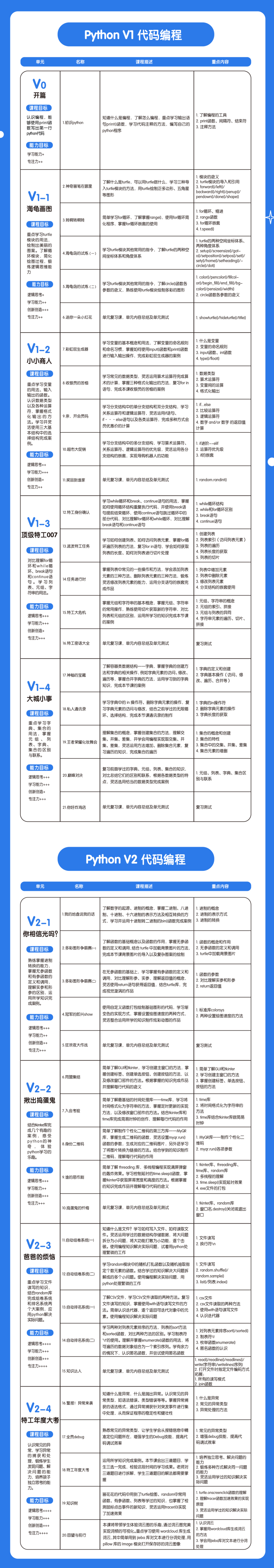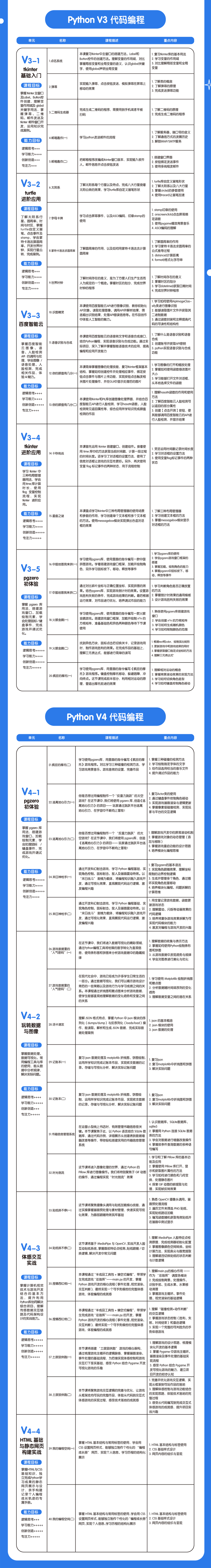 Python 双系列定制课程:P 系列和V 系列,按阶段精准匹配考级赛事要求,兼顾基础巩固与进阶冲刺,适配不同教学场景。