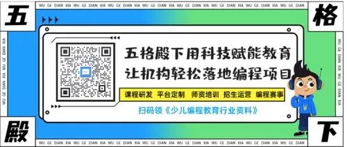 如需了解课程详情或咨询合作,长按图片识别二维码加五格工作人员咨询!并立即加入7000+编程机构校长/老师都在的行业社群 !