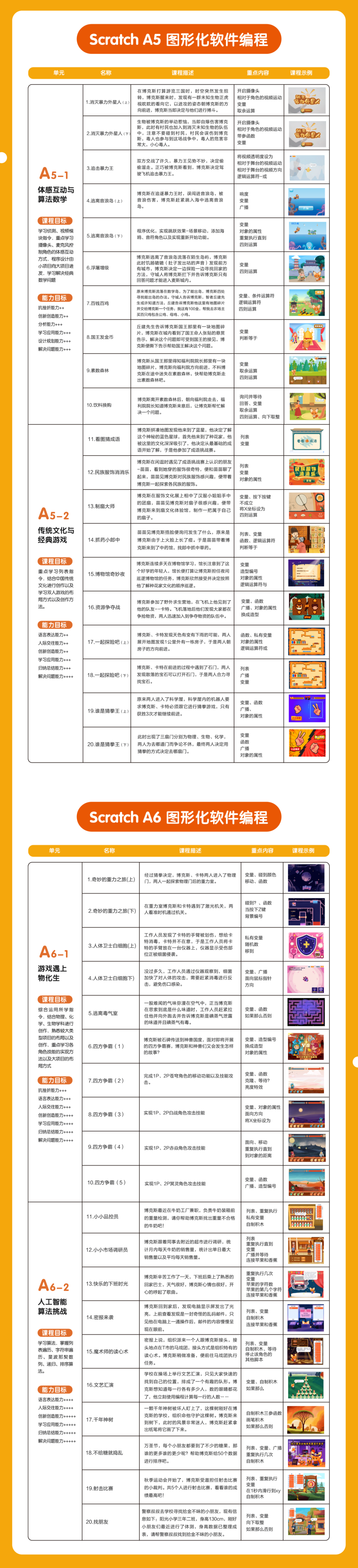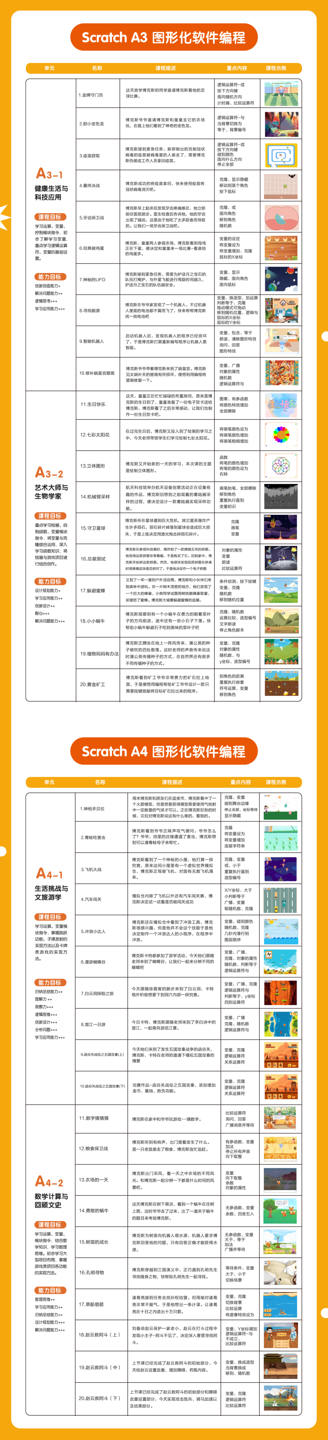 💚 课程简介:深化编程技能,引导孩子熟练运用指令将奇思妙想转化为现实作品,涵盖生活、游戏、数学、艺术、文史、科学等多元主题。